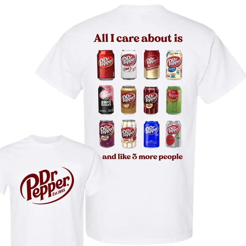 All I Care About is Dr Pepper and Like 3 More People T-Shirt, Dr Pepper T Shirt, Two Sided Graphic Printed Unisex Cotton T-Shirts In All Sizes For Men And Women
