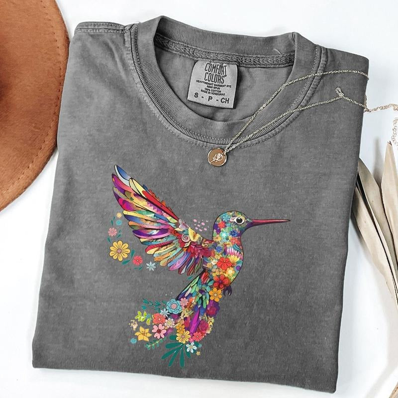 Comfort Colors Floral Hummingbird Shirt, Animal Lover Tee, Bird Shirt, Gift For Her, Bird Lover T-Shirt, Spring Birds, Unisex T-Shirt