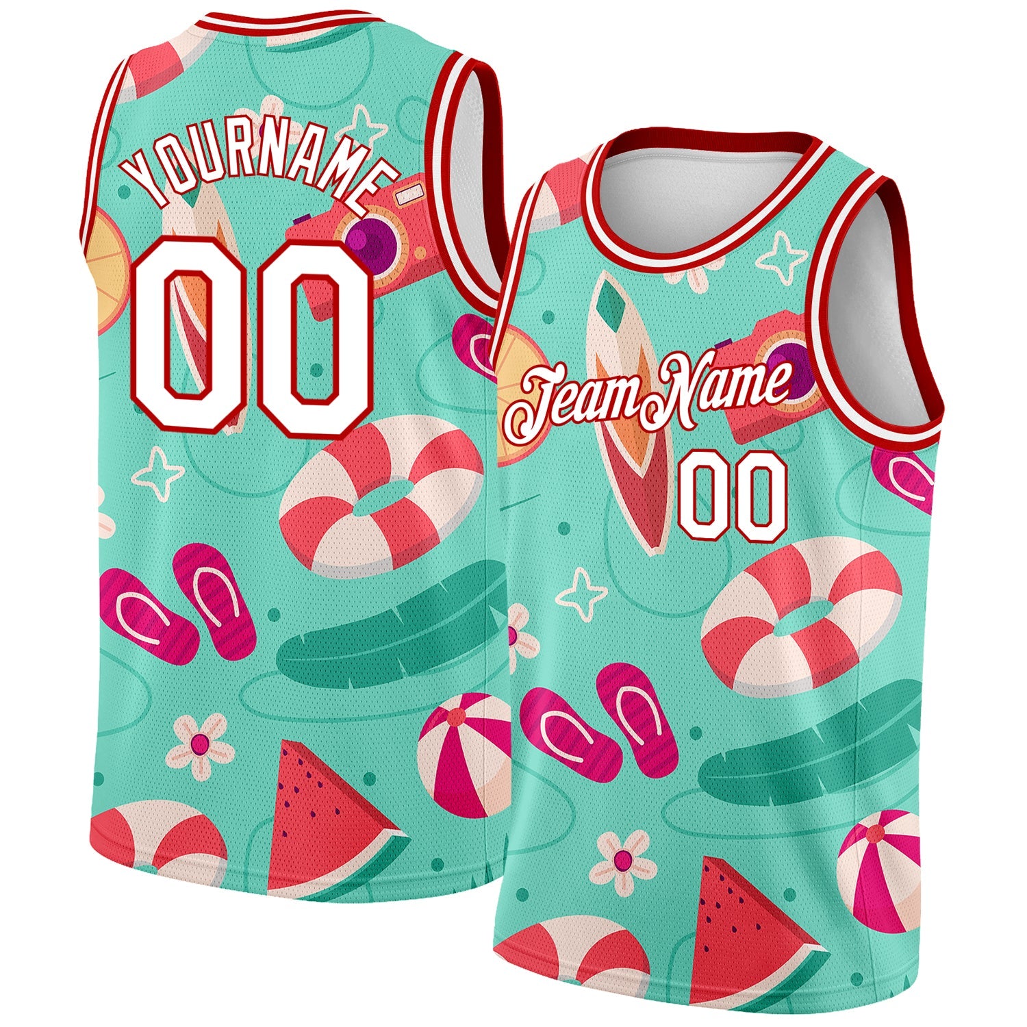 Custom Aqua White-Red 3D Pattern Tropical Hawaii Beach Authentic Basketball Jersey