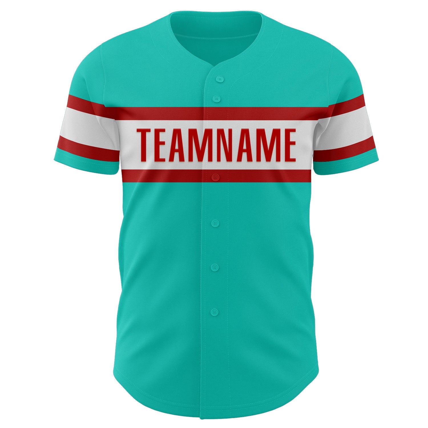 Custom Aqua White-Red Authentic Baseball Jersey