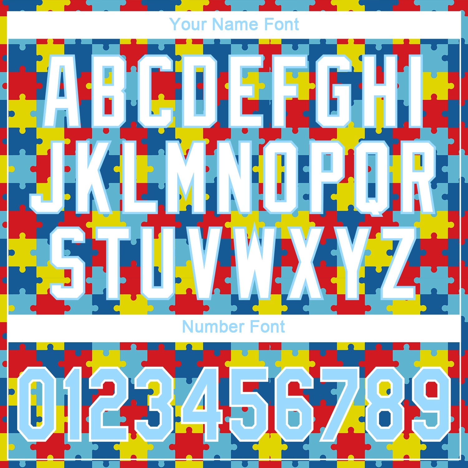 Custom Autism Awareness Puzzle Pieces Light Blue-White 3D Authentic Baseball Jersey