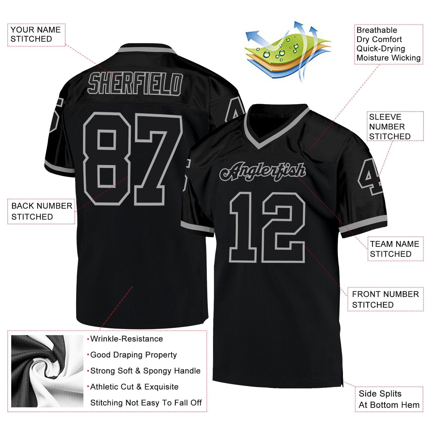 Custom Black Black-Gray Mesh Authentic Throwback Football Jersey