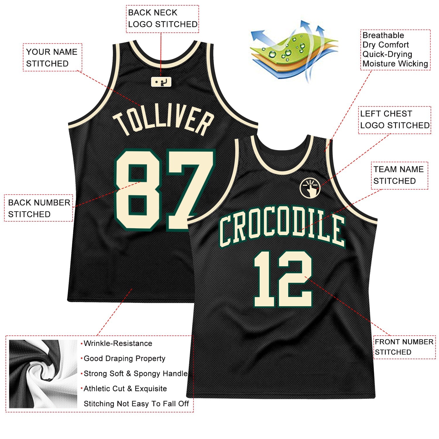 Custom Black Cream-Green Authentic Throwback Basketball Jersey