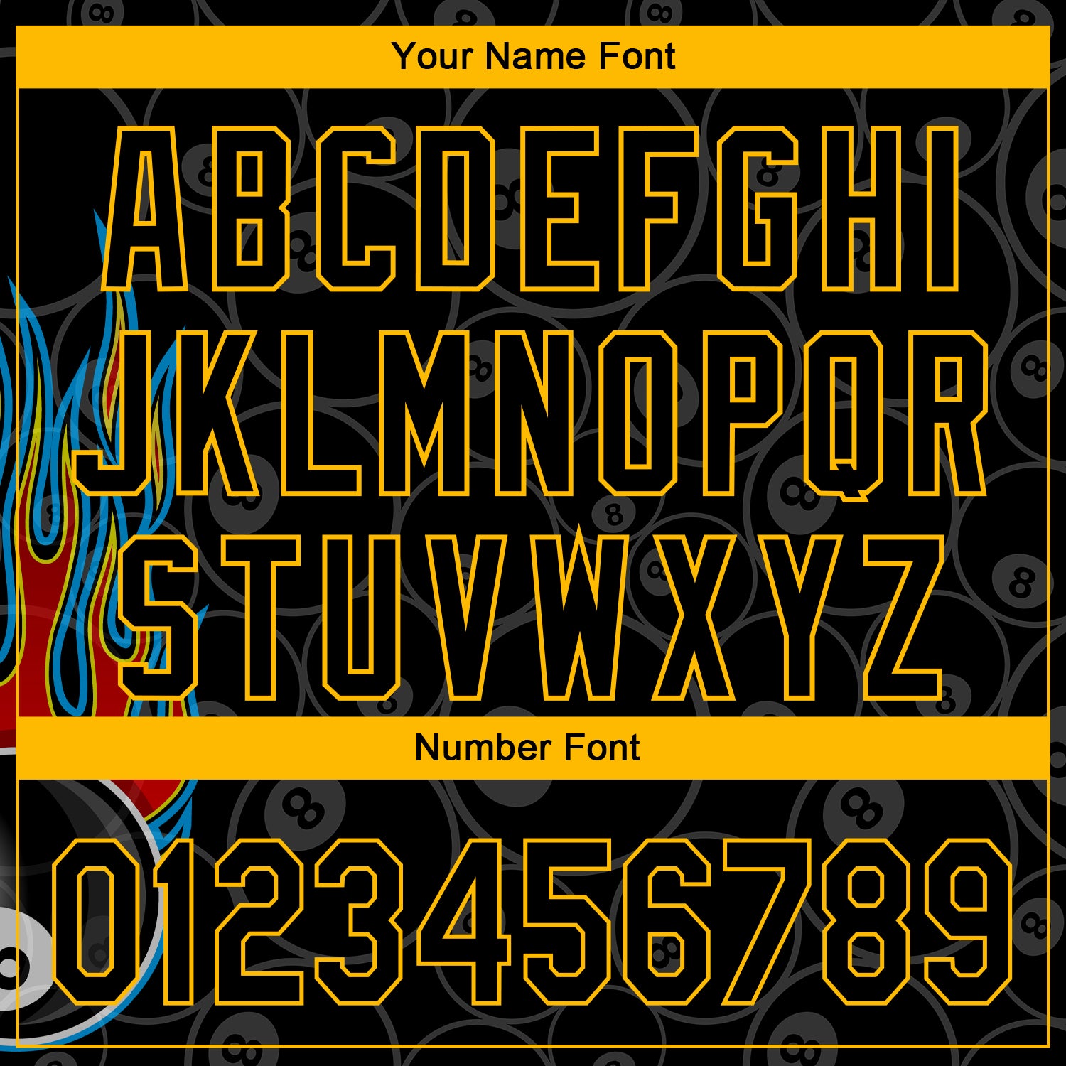 Custom Black Gold 3D Pattern Design Flaming Billiards Snooker 8 Ball Authentic Baseball Jersey