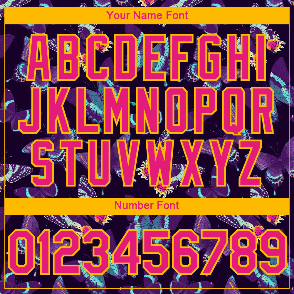 Custom Black Hot Pink-Yellow 3D Pattern Design Animal Butterfly Authentic Baseball Jersey