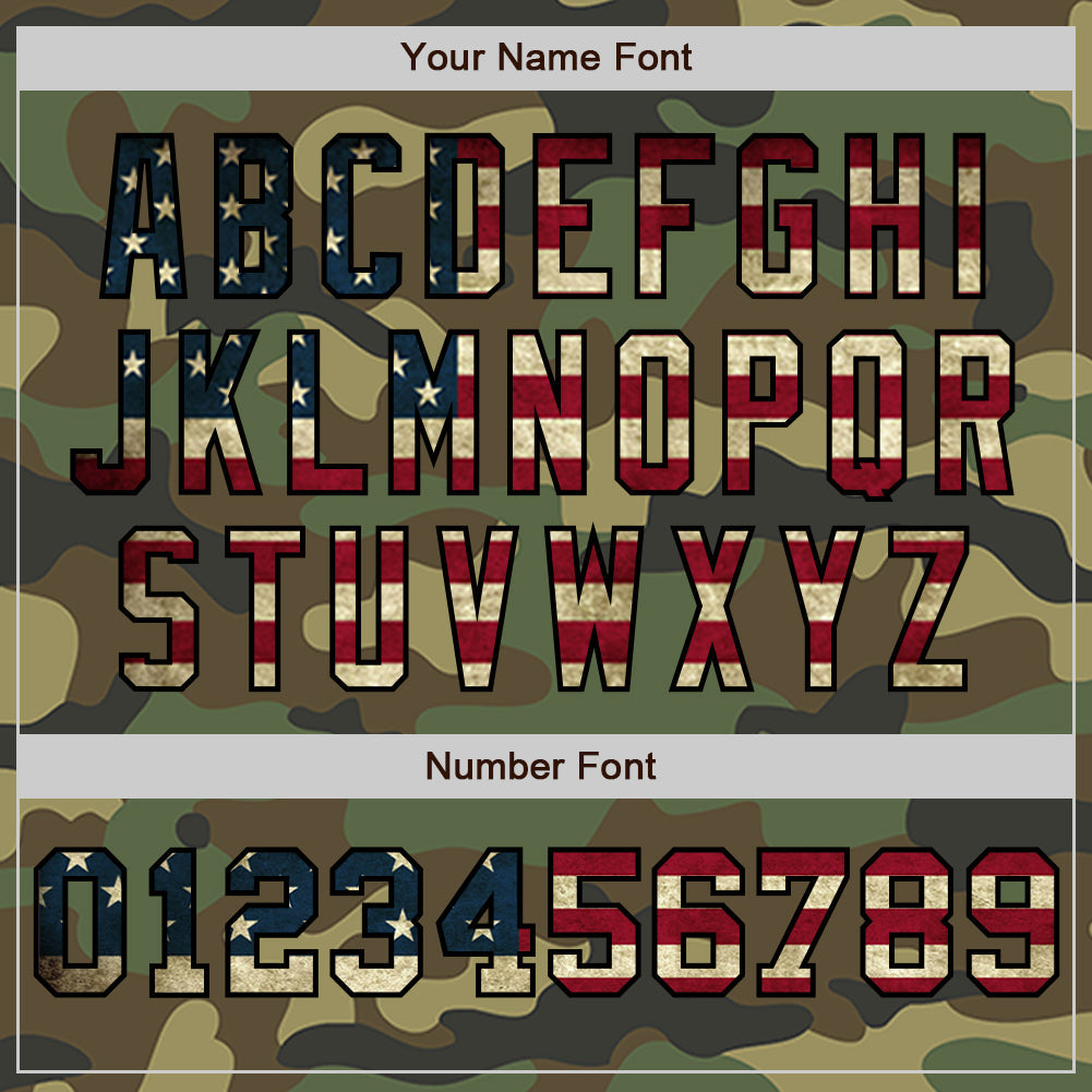 Custom Camo Vintage USA Flag Cream-Black Pinstripe Authentic Split Fashion Salute To Service Baseball Jersey