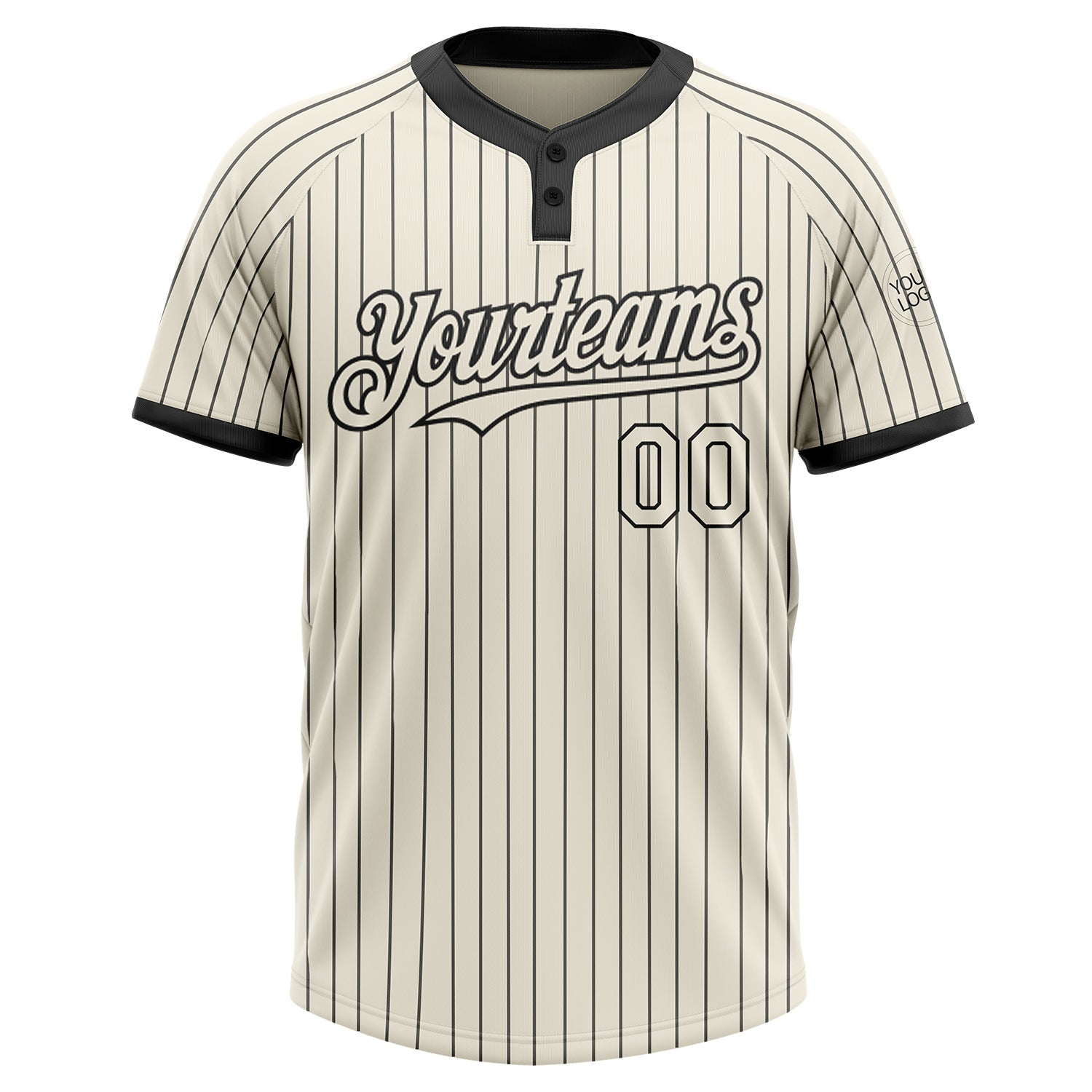Custom Cream Black Pinstripe Black Two-Button Unisex Softball Jersey