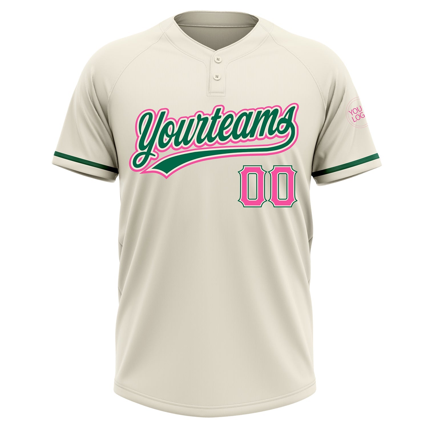 Custom Cream Pink-Kelly Green Two-Button Unisex Softball Jersey