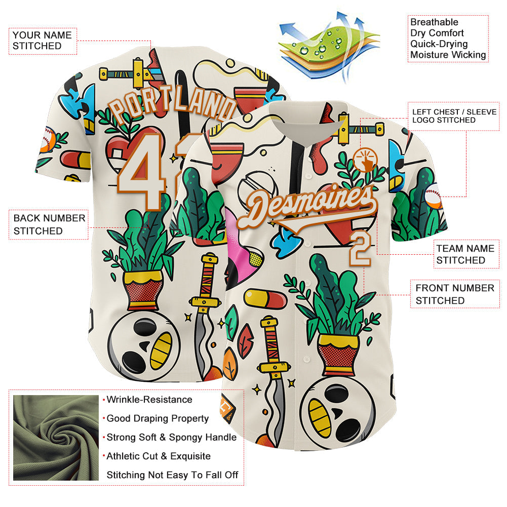 Custom Cream Texas Orange 3D Geo Law Life Balance Authentic Baseball Jersey