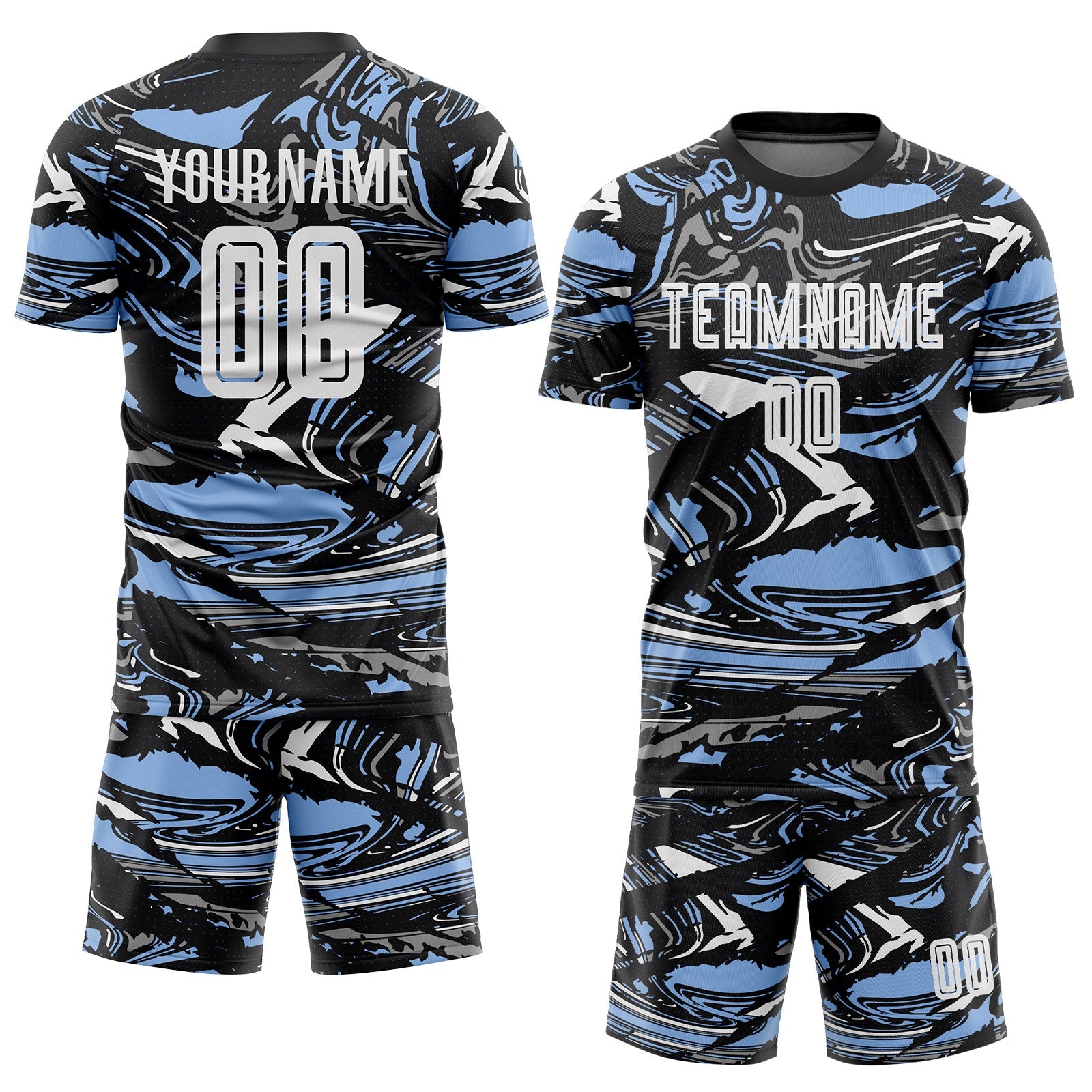 Custom Figure White Black-Light Blue Fluid Art Splash Sublimation Soccer Uniform Jersey