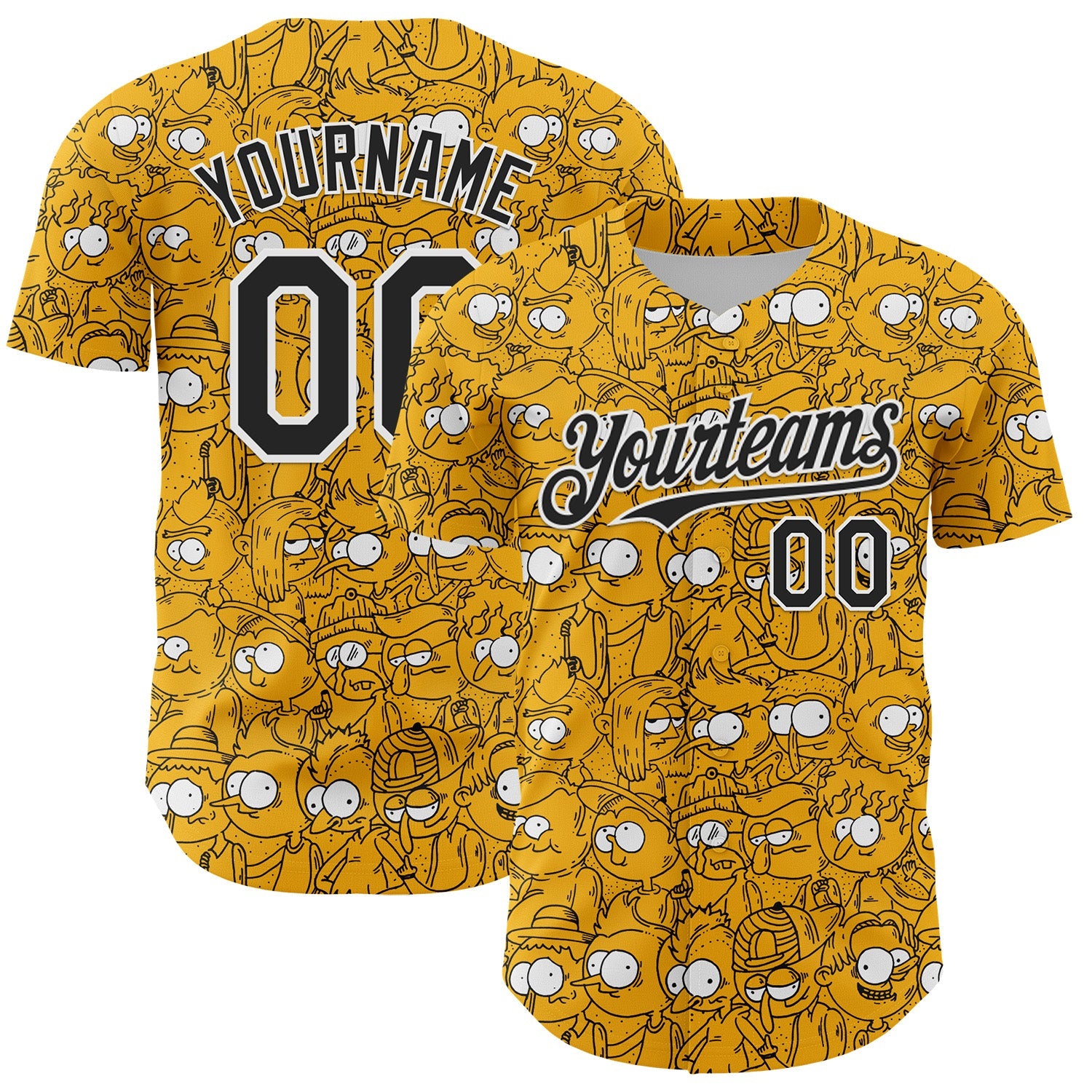 Custom Gold Black-White 3D Pattern Design Funny Cartoon People Authentic Baseball Jersey
