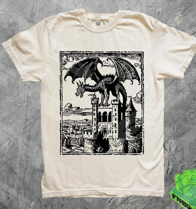 Dragon Vintage Dark Art Graphic Shirt, 90s Tattoo, Retro Medieval Y2k Tshirt, Dreamy Abstract Art, Dragon Lovers Gift Tee, Grimdark, Baggy