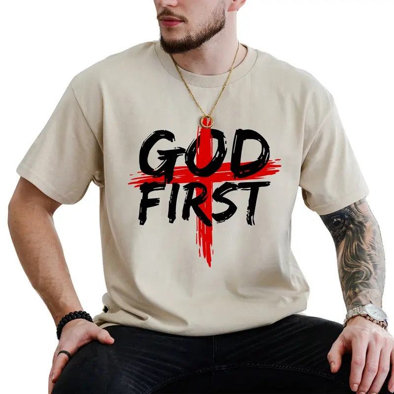 God First Graphic Tee, Bible Verse Men Shirt, Religious Unhinged Tee, Faith Men T-shirt, Christmas Gifts For Christian