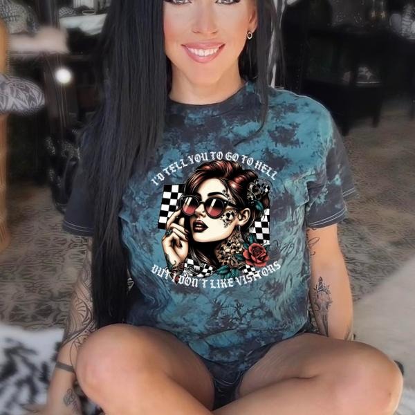 'I'd Like To Tell You to go To H*ll, But I Don't Visitors Black & Green Tie Dye Crewneck Sweatshirt, T Shirt, or Hoodie Pullover , Alt, Grunge, Streetwear, Sarcastic