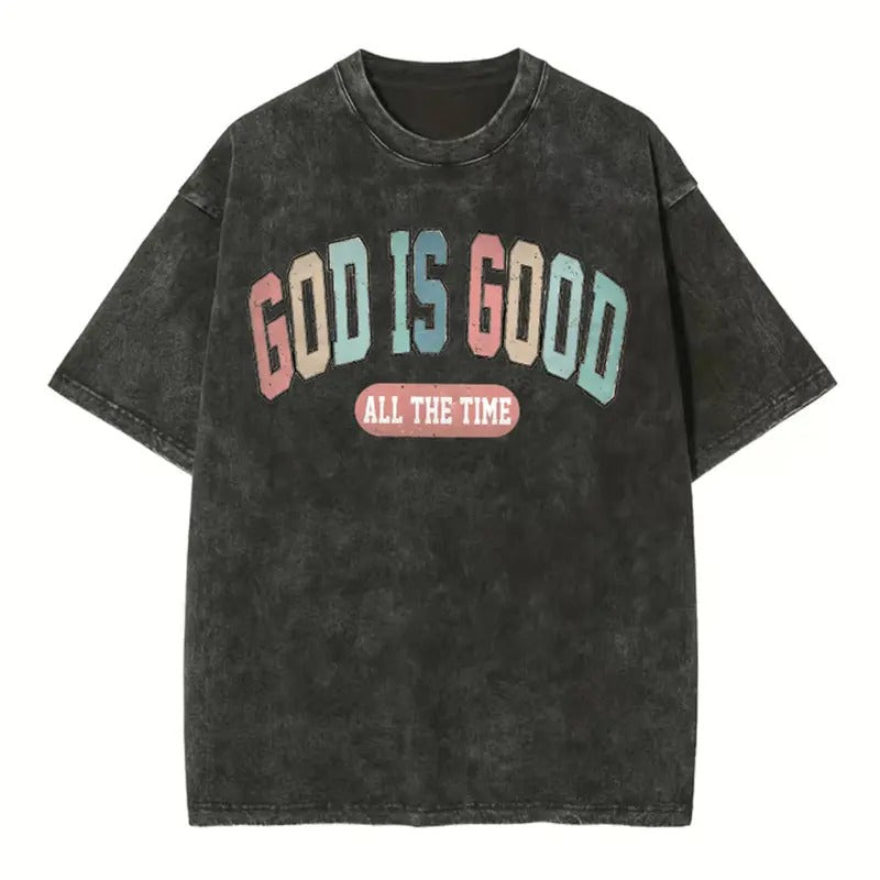[ Mineral Wash ] God Is Good All The Time Christian Washed Shirt Jesus Graphic Washed Style Shirt