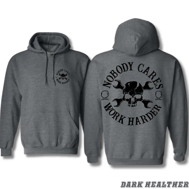 Nobody Cares Work Harder Hoodie - Bold Skull Graphics and Tough Motto for Skilled Workers, Perfect for Blue-Collar Heroes and Work Enthusiasts, Unisex Hoodie, Menswear Tops Sweatshirts Pullover