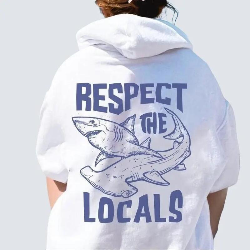 Respect the Locals Hoodie Shark Graphic Hoodie Aesthetic Shirt Words on Back Beach Tee Oversized