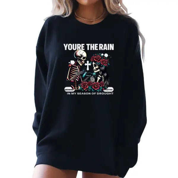 'You are the Rain In My Season of Drought' Crewneck Sweatshirt, T Shirt, or Hoodie Pullover | Punk, Alt, Grunge, Goth, Skeleton Style